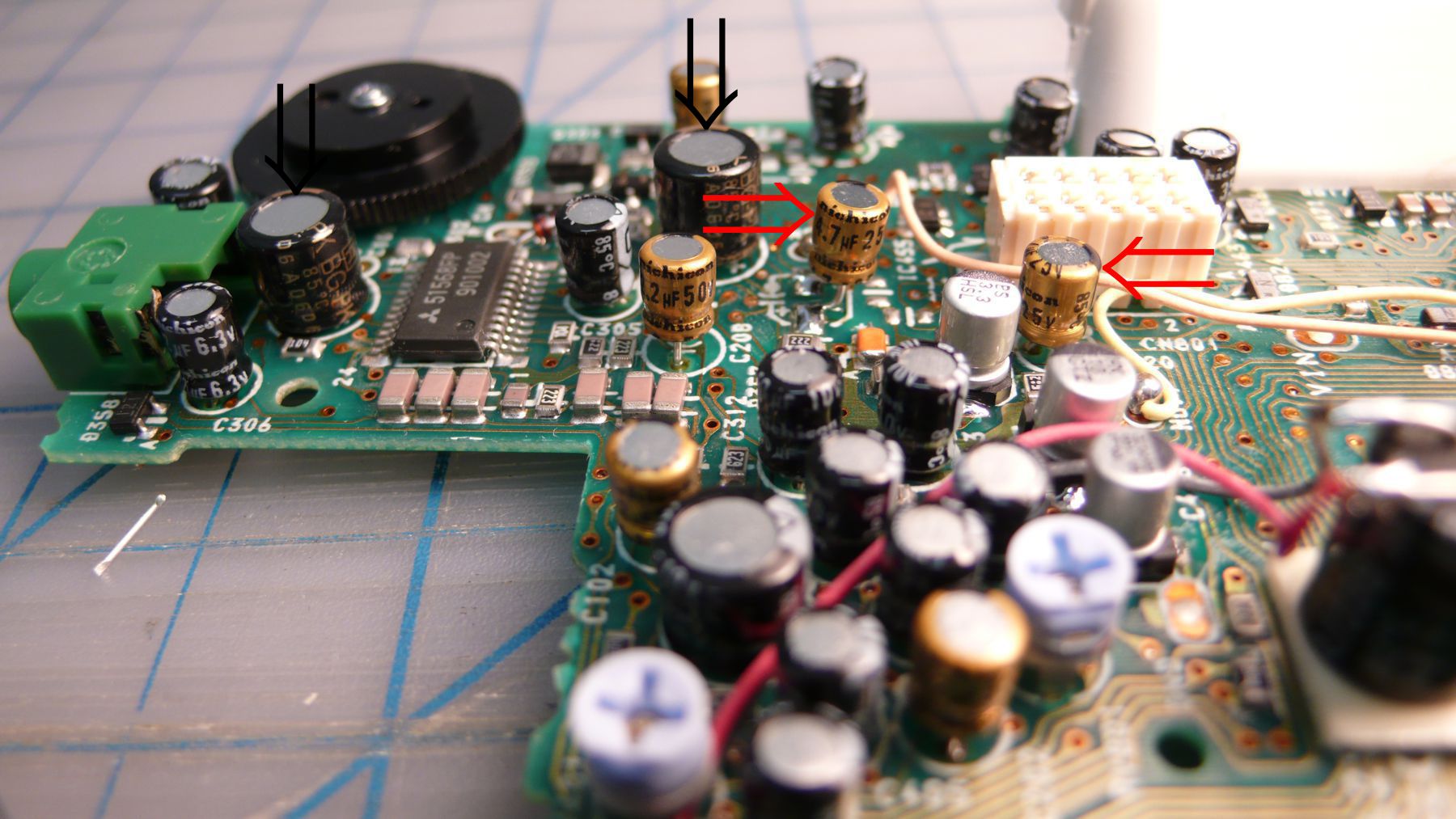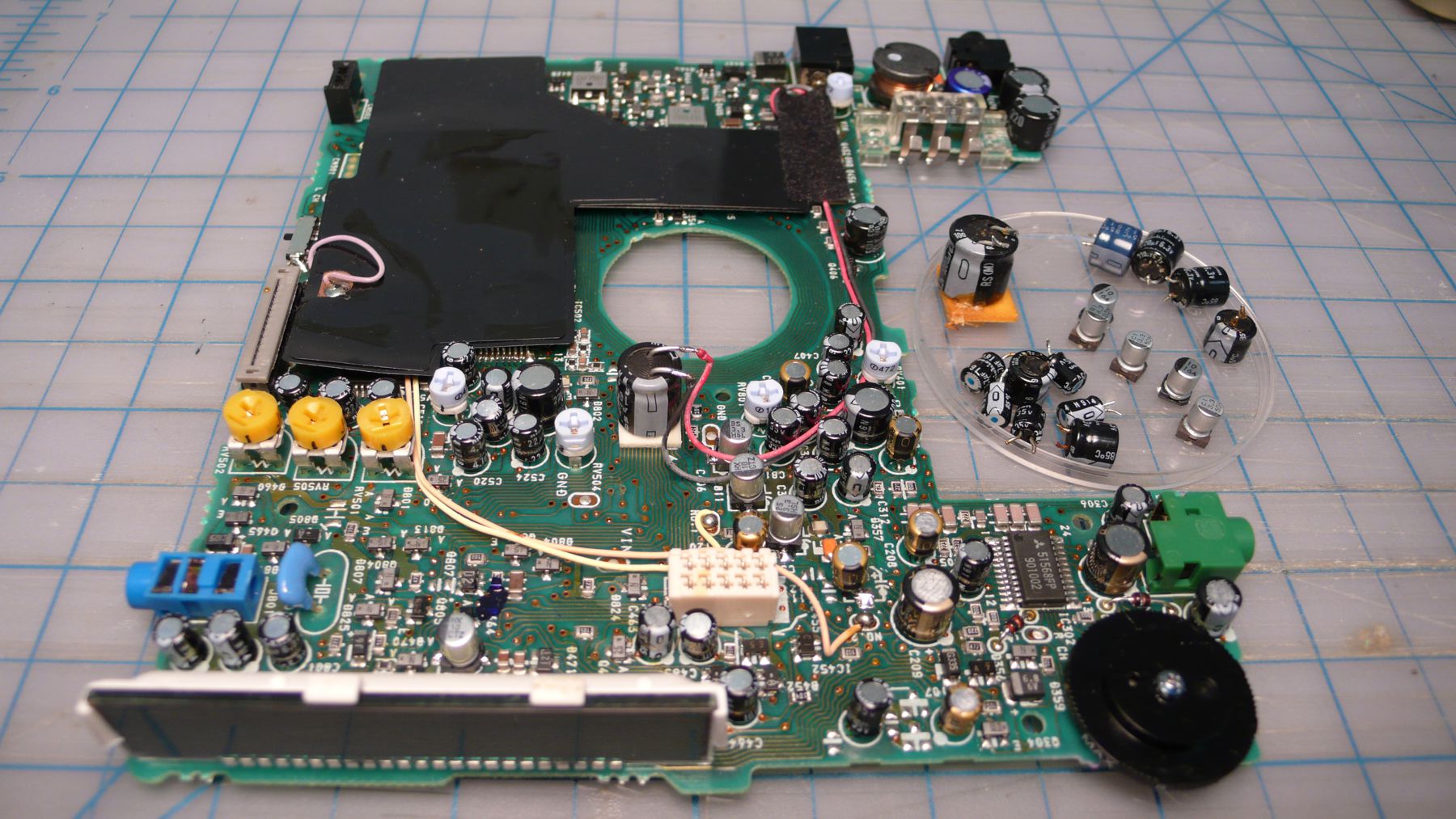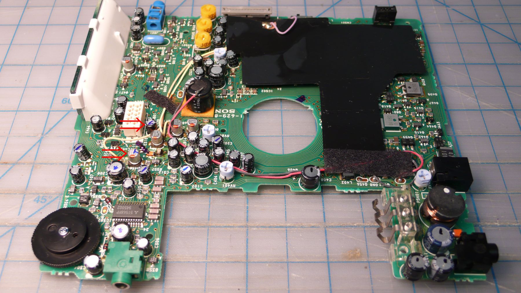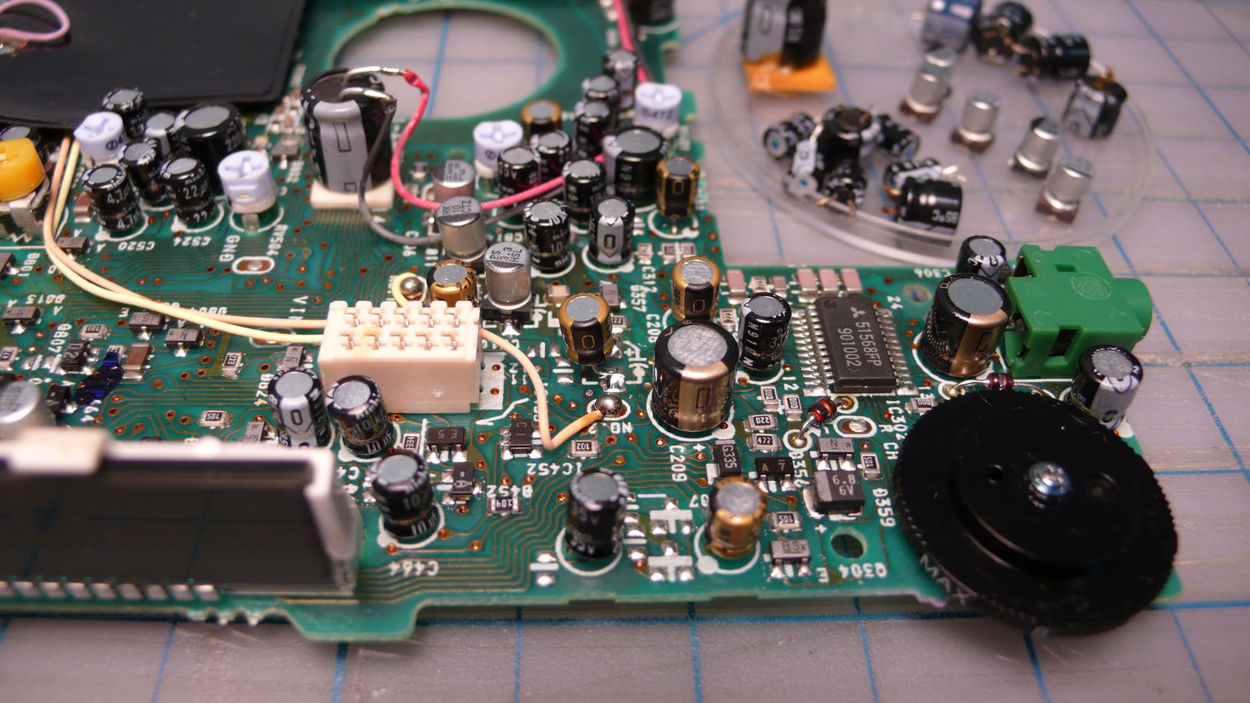 Three more grommets let the Discman wobble over the desk. Any vibration generated by spinning CD is detected by the gyroscope: