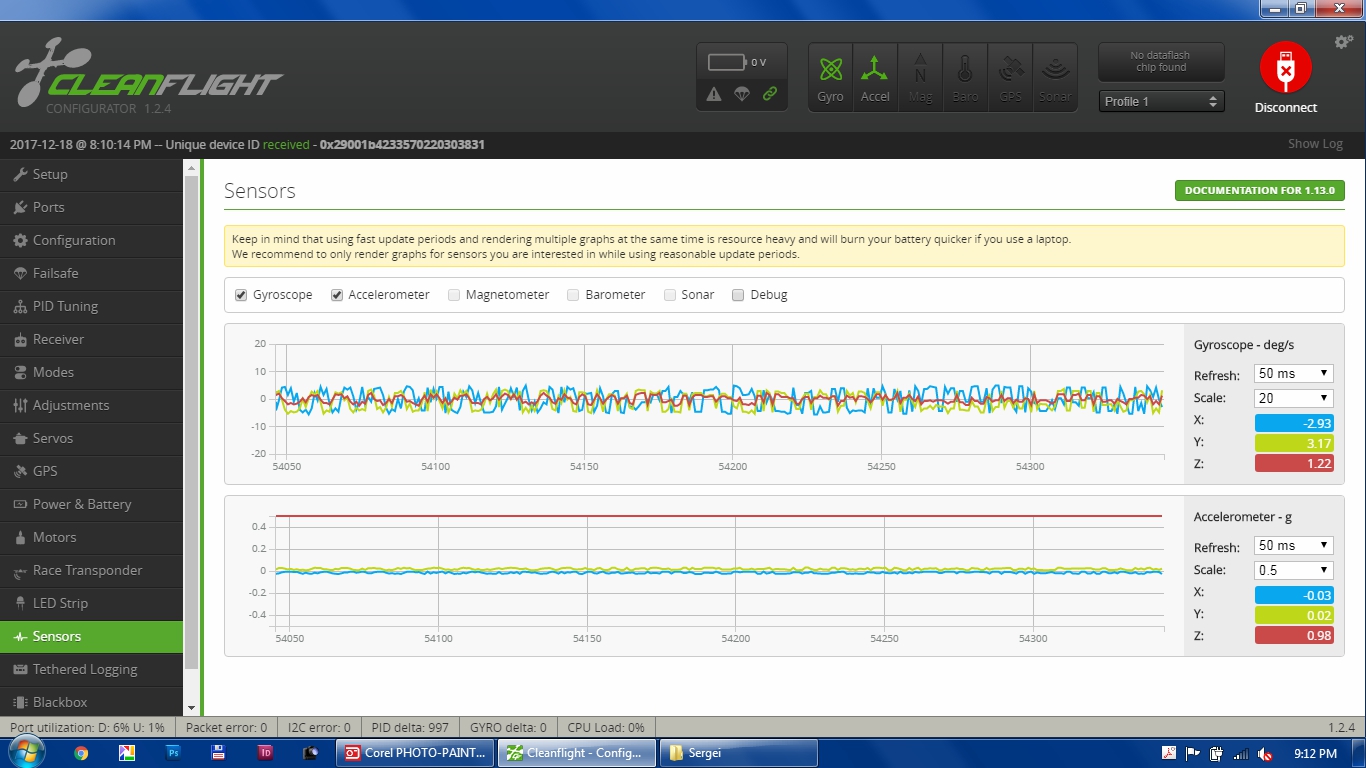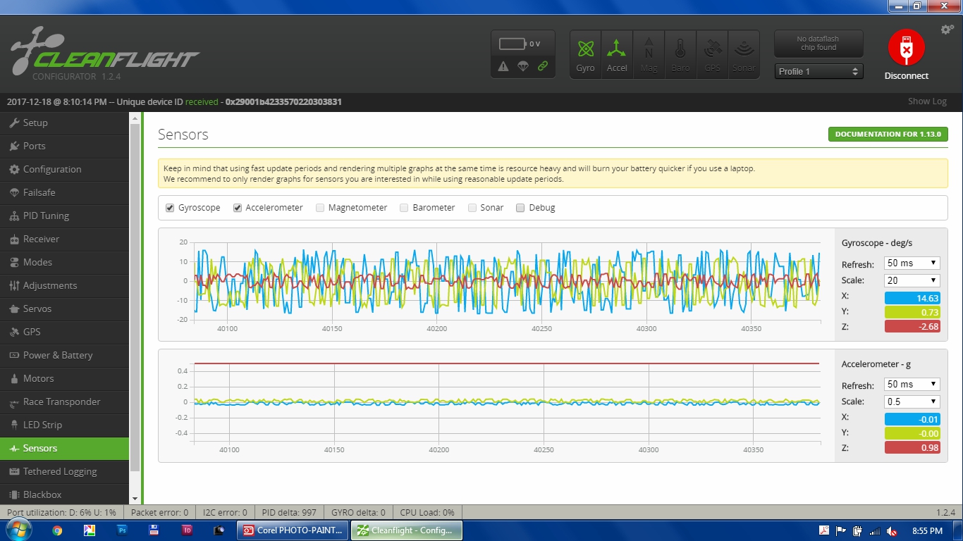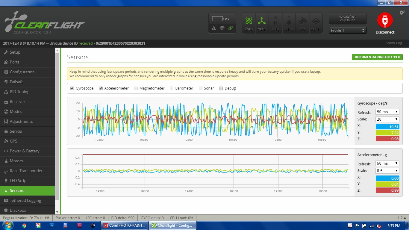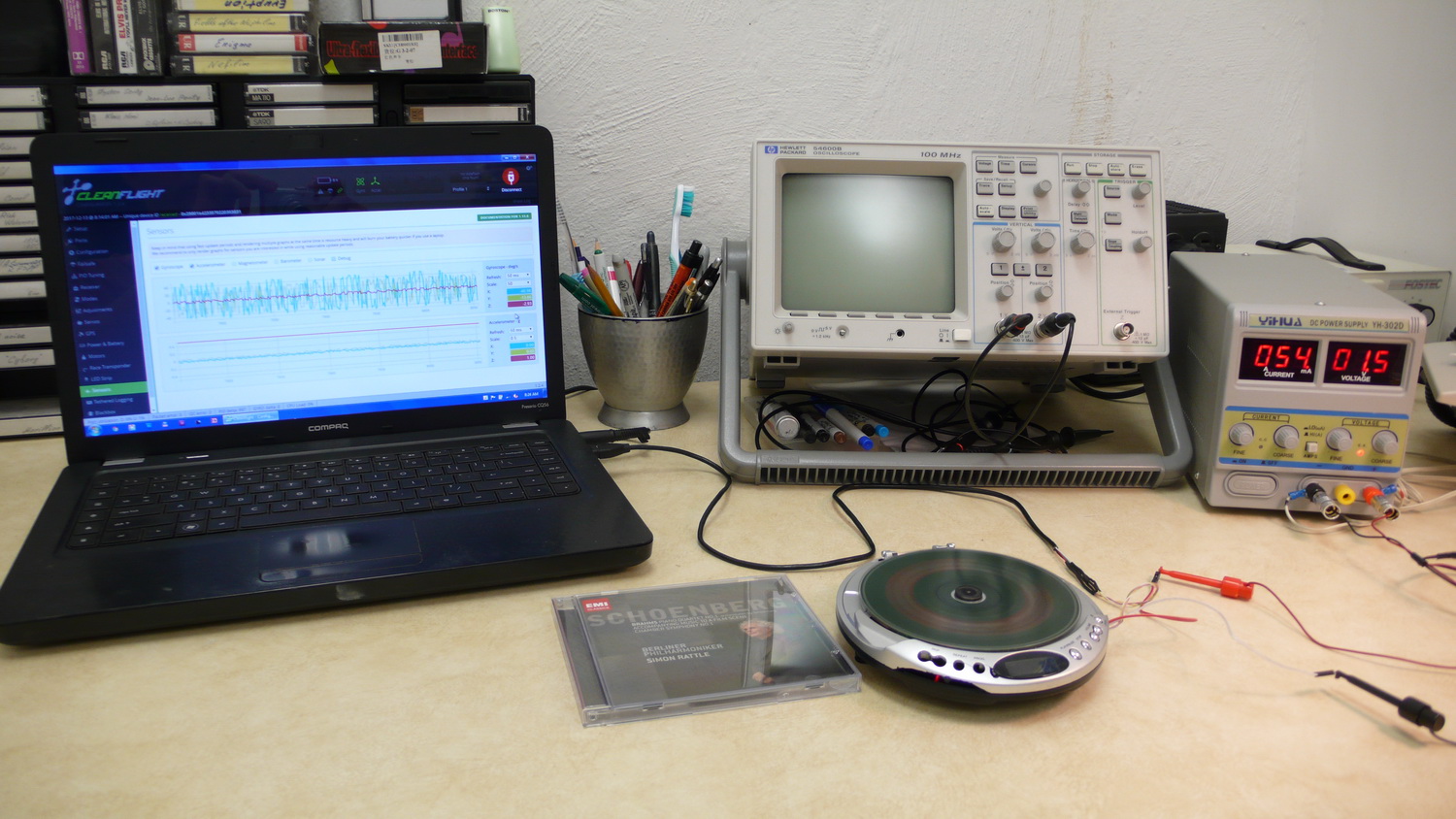 CD platter motor is connected to 1.5V regulated dc, CleanFlight software picks up the signal off the Gyroscope and Accelerometer. Unlike all other Bad CDs in my collection, this CD is warped (exactly like a warped LP), not unbalanced. It needs Furutech LP Flattener, no amount of balancing could make this warped CD playable by Wadia: