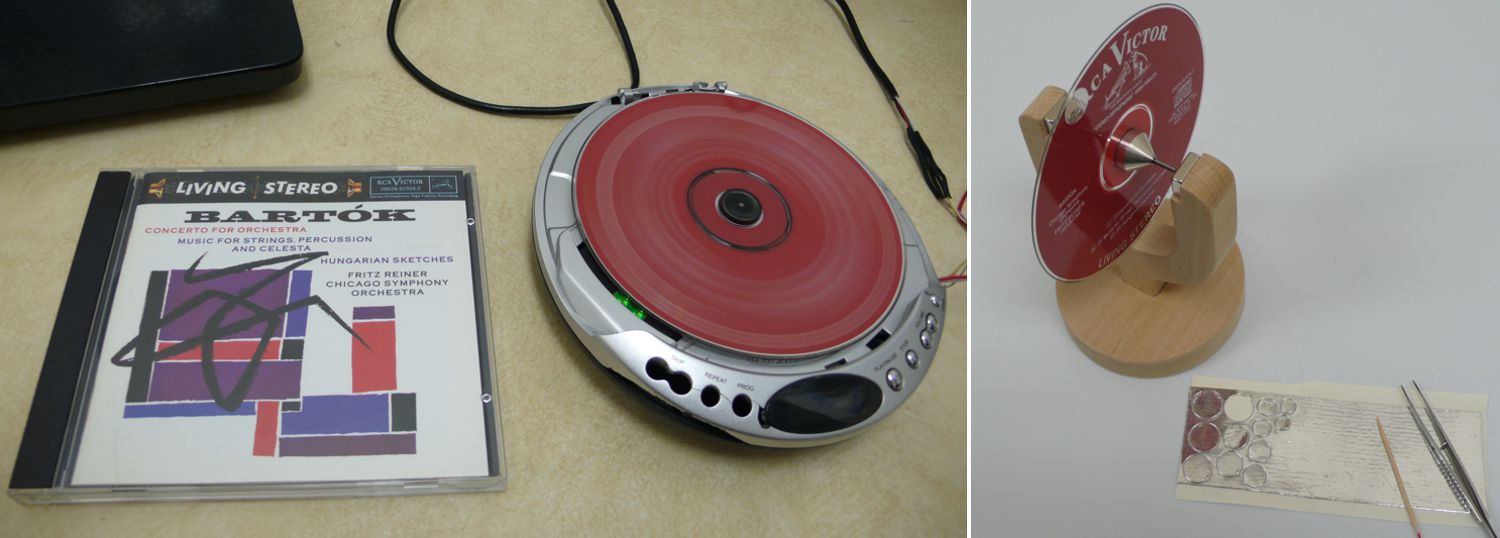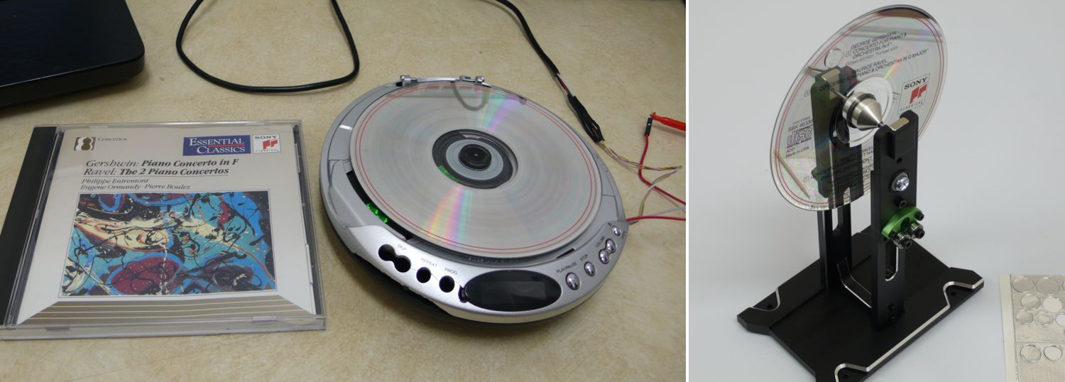 With slight modifications Magnetic-Levitation propeller balancer (once again, help arrived from TankyDrone!) can be used to check if CD is perfectly balanced. Pieces of aluminum foil can be used to balance CD: