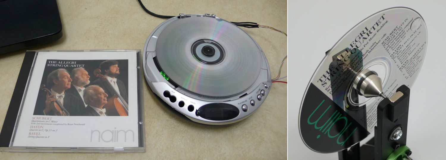 CDs not playable by Wadia are easy to detect by playing them on a portable CD player while holding Discman in you hand. With bad CDs Discman vibrates like an unbalanced centrifuge! These last few months I was trying to find a way to make this test a bit more “objective”. Help came from the drone/quad-copter aficionado: Bogdan R. of tankydrone.com. He loaned me a few flight controllers, once attached to CD laser mechanism, chip accelerometer and gyroscope detect the level of vibration during CD play. Accelerometer in quad-copters is just an afterthought, but gyroscope is sensitive enough to provide meaningful and reproducible results on Discman vibration, or rather changes in Discman position when it is allowed to wobble.