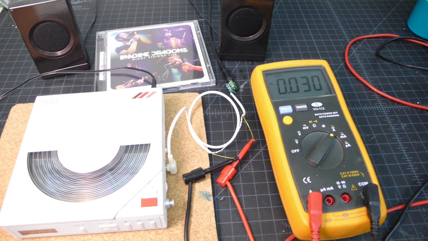 30mA into 36.3Ohm, we have over 30mW of power here! Very few Discmans reach these levels: Sony D-50MkII, D-100, Technics SL-XP5, a few Philips portables